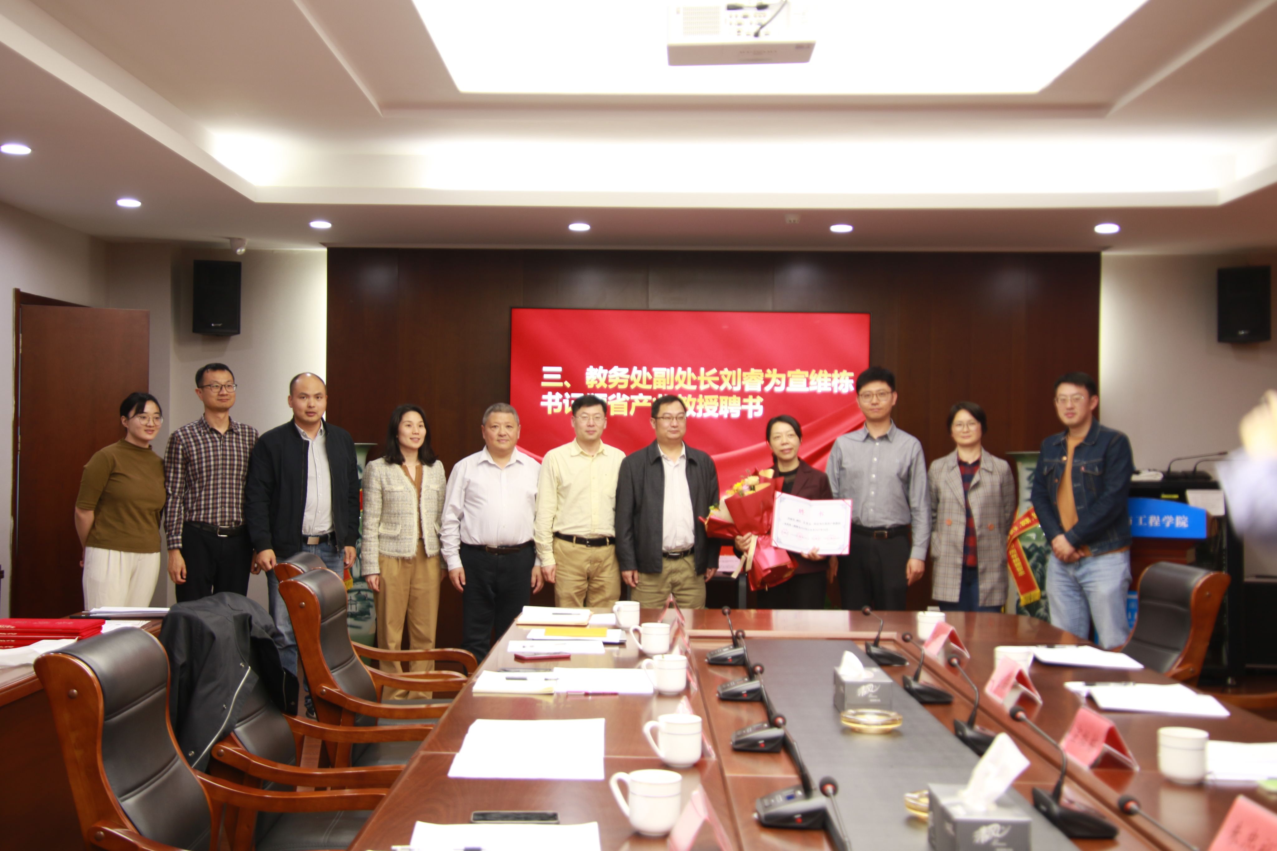 教务处副处长刘睿向宣维栋总经理颁发了江苏省产业教授聘书。他指出校企双方应坚持优势互补、合作共赢,通过资源共建共享,强化课程基础,优化教学内容,构建产教融合课程体系,提高人才培养质量。