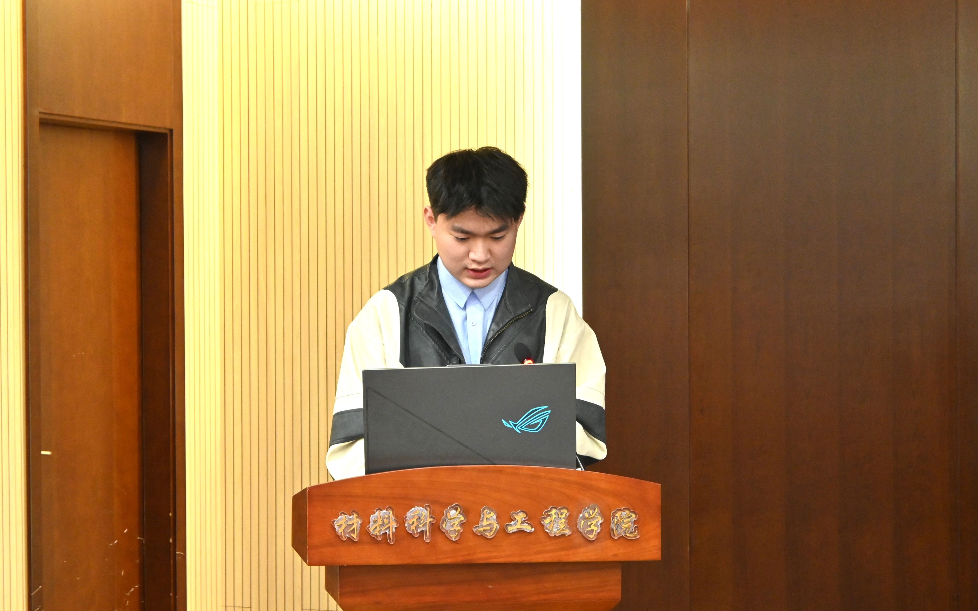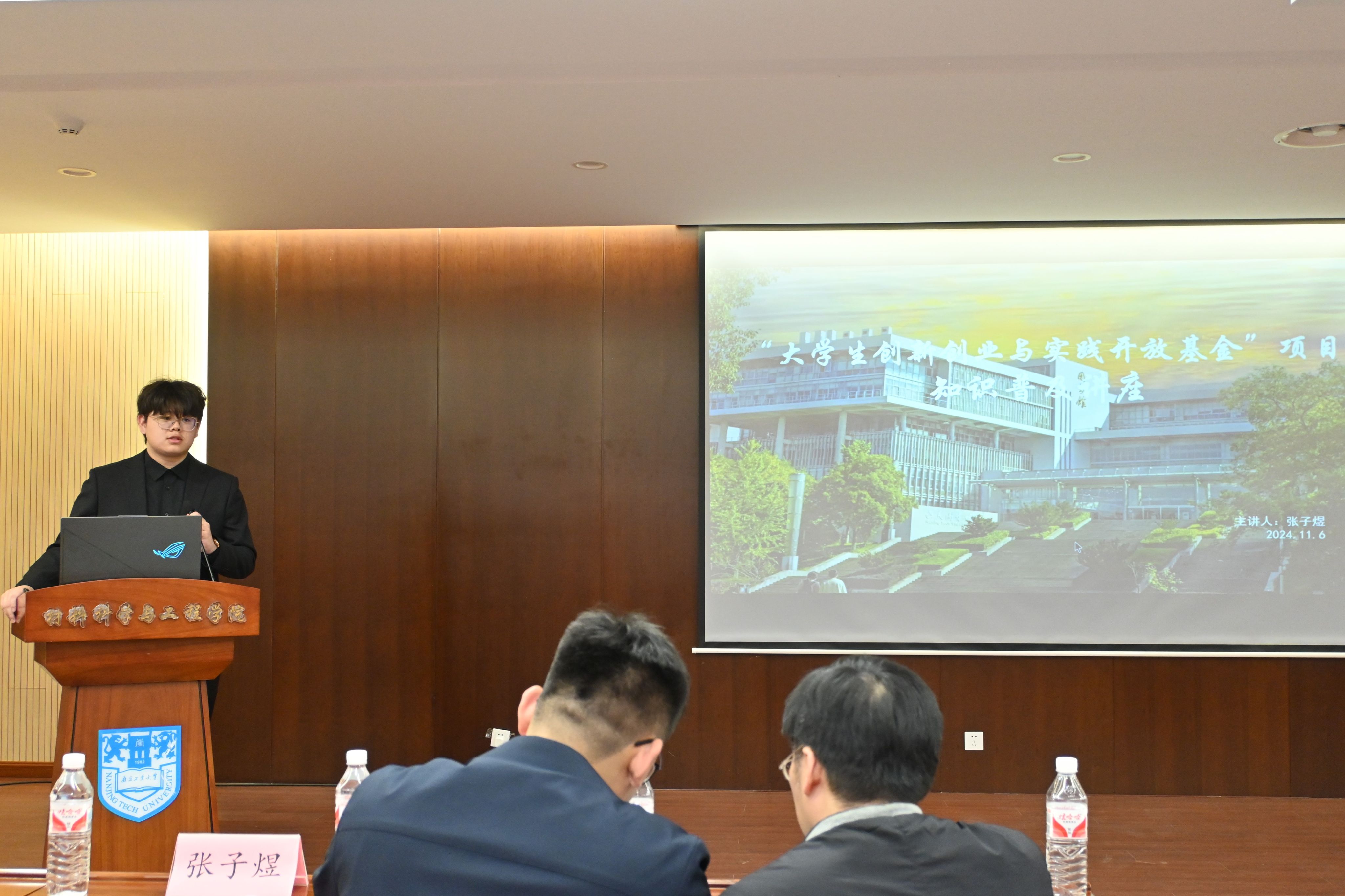 夏忠浩同学向大家介绍了近年来学院大创项目申报的相关情况,分享了自己做科研项目的心路历程和经验启示。