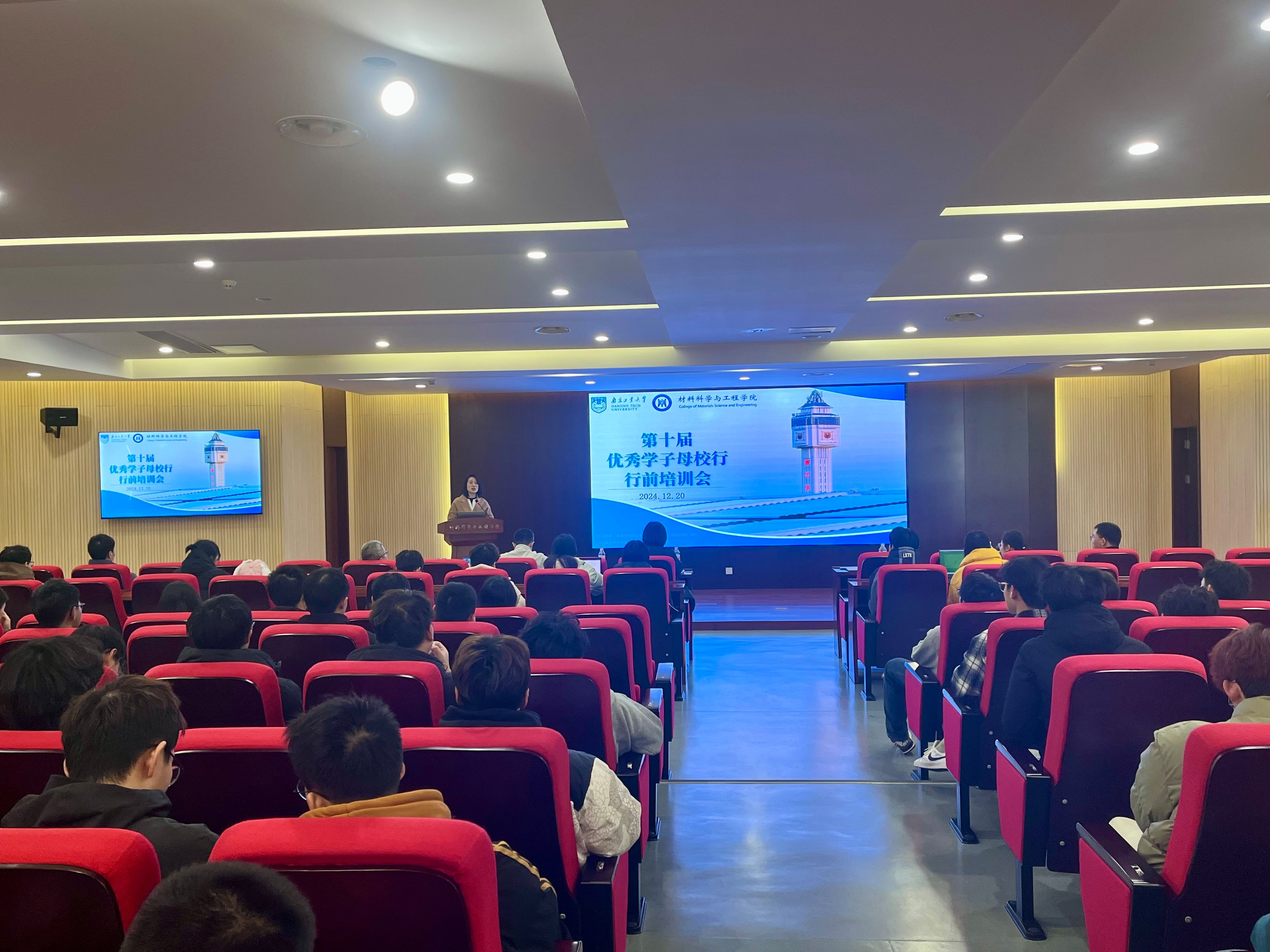 12月20日下午,材料学院于润德楼B512举行第十届优秀学子母校行学院培训会。本次会议由学办主任丁楠主持,学院各专业教师代表、2023年母校行优秀志愿者及2024年报名学生参加。