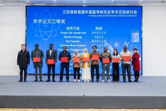 11月30日至12月1日,在江苏省教育厅的指导下,由江苏省高等教育学会外国留学生教育管理研究委员会主办、江苏大学承办的2024年江苏高校首届外国留学研究生学术交流研讨会举行。我校共3名硕博研究生获奖,其中我院2名研究生获佳绩,我校获评“优秀组织奖”。