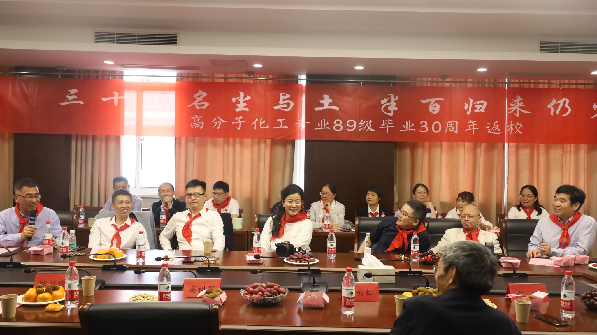 校原党委副书记、副校长、教育发展基金会理事长高明、材料学院党委书记高树军、副书记石防震,任课教师代表张云灿、张军,高分子系主任陈双俊、党政办主任李荃、学办主任丁楠等30多名校友齐聚一堂。