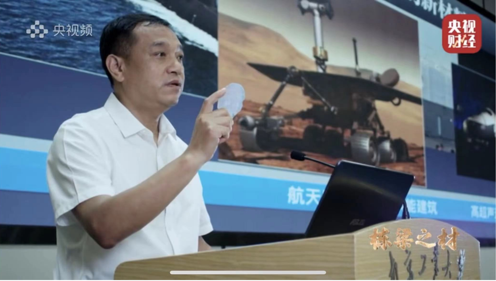 2022年7月,央视《栋梁之材》节目组来我校进行实地采访拍摄,深入了解气凝胶材料研发、生产的全过程并给予高度评价。沈晓冬教授团队长期致力于气凝胶材料基础研究与关键技术开发,突破了氧化硅气凝胶材料存在的耐高温性能差等技术难点,建立了完整的自主知识产权体系。