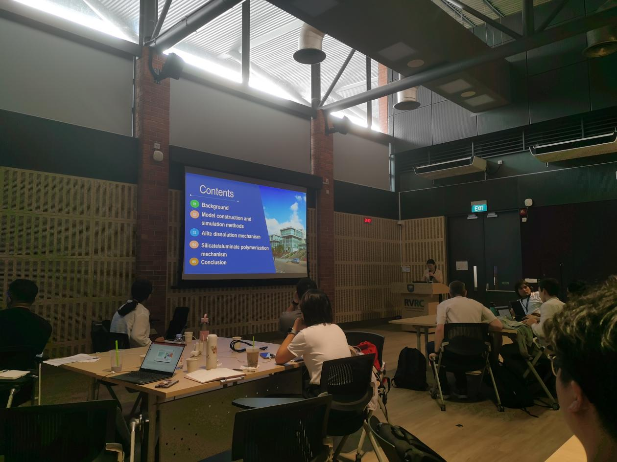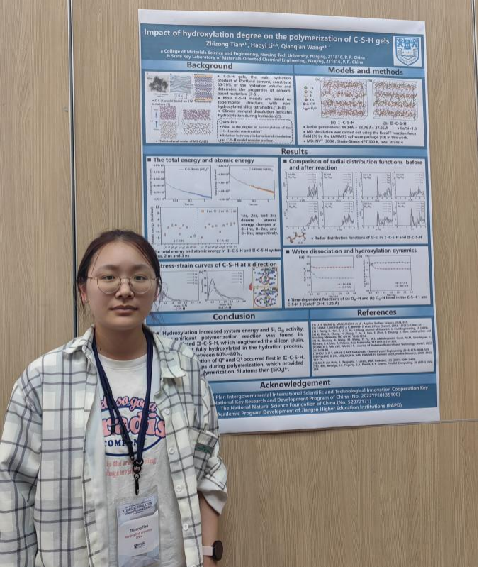 我校tyc234cc 太阳成集团王倩倩副教授受邀作题为“The Influence of Changes in Silicon or Aluminium Bonding Numbers on C-(A)-S-H Gel Polymerization: Insights from Molecular Dynamics Simulation”口头报告,王倩倩副教授指导的材研2203班田志宗同学受邀进行海报展示。