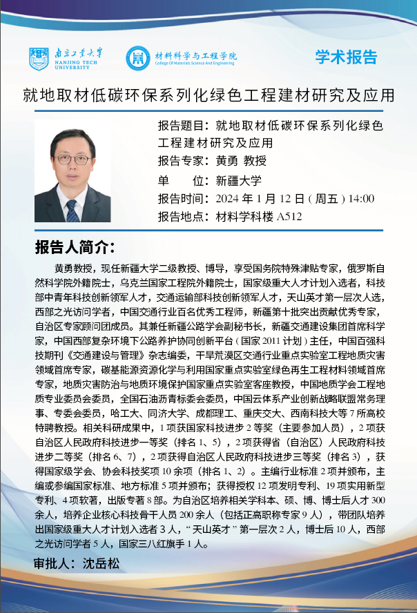 黄勇教授,现任新疆大学二级教授、博导,享受国务院特殊津贴专家,俄罗斯自然科学院外籍院士,乌克兰国家工程院外籍院士,国家级重大人才计划入选者,科技部中青年科技创新领军人才,交通运输部科技创新领军人才,天山英才第一层次人选,西部之光访问学者,中国交通行业百名优秀工程师,新疆第十批突出贡献优秀专家,自治区专家顾问团成员。