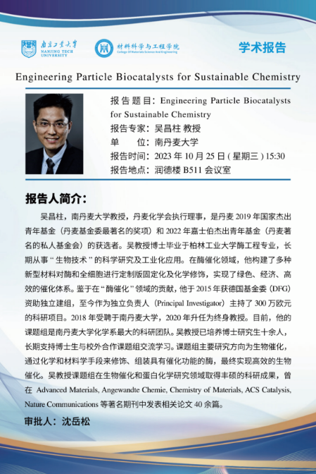 吴昌柱,南丹麦大学教授,丹麦化学会执行理事,是丹麦 2019 年国家杰出青年基金(丹麦基金委最著名的奖项) 和2022年嘉士伯杰出青年基金(丹麦著名的私人基金会)的获选者。吴教授博士毕业于柏林工业大学酶工程专业,长期从事“生物技术”的科学研究及工业化应用。在酶催化领域,他构建了多种新型材料对酶和全细胞进行定制版固定化及化学修饰,实现了绿色、经济、高效的催化体系。鉴于在“酶催化”领域的贡献,他于2015 年获德国基金委(DFG)资助独立建组,至今作为独立负责人 (PrincipalInvestigator) 主持了300万欧元的科研项目。2018年受聘于南丹麦大学,2020 年升任为终身教授。目前,他的课题组是南丹麦大学化学系最大的科研团队。吴教授已培养博士研究生十余人,长期支持博士生与校外合作课题组交流学习。课题组主要研究方向为生物催化通过化学和材料学手段来修饰、组装具有催化功能的酶,最终实现高效的生物催化。吴教授课题组在生物催化和蛋白化学研究领域取得丰硕的科研成果,曾在 Advanced Materials, Angewandte Chemie, Chemistry of Materials, ACS CatalysisNature Communications 等著名期刊中发表相关论文 40 余篇。