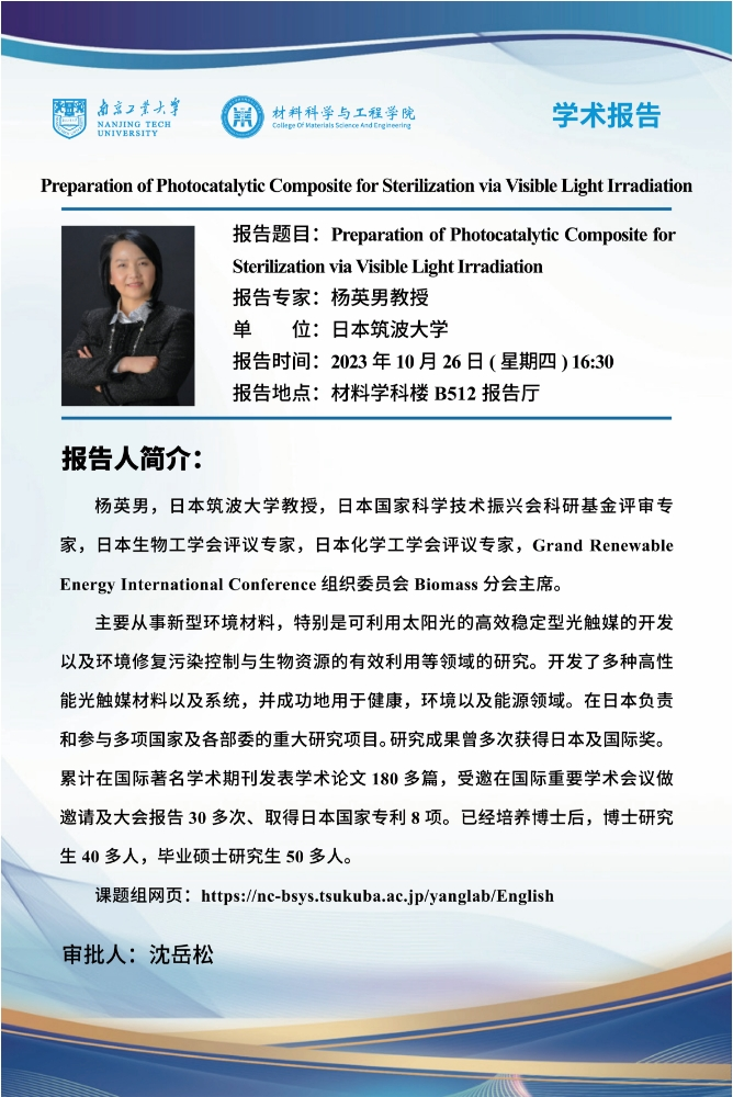 杨英男,日本筑波大学教授,现任日本国家科学技术振兴会科研基金评审专家,日本生物工学会评议专家,日本化学工学会评议专家,Grand Renewable Energy International Conference组织委员会Biomass分会主席,2011-2023年中日韩生命環境国际论坛组委会代表。