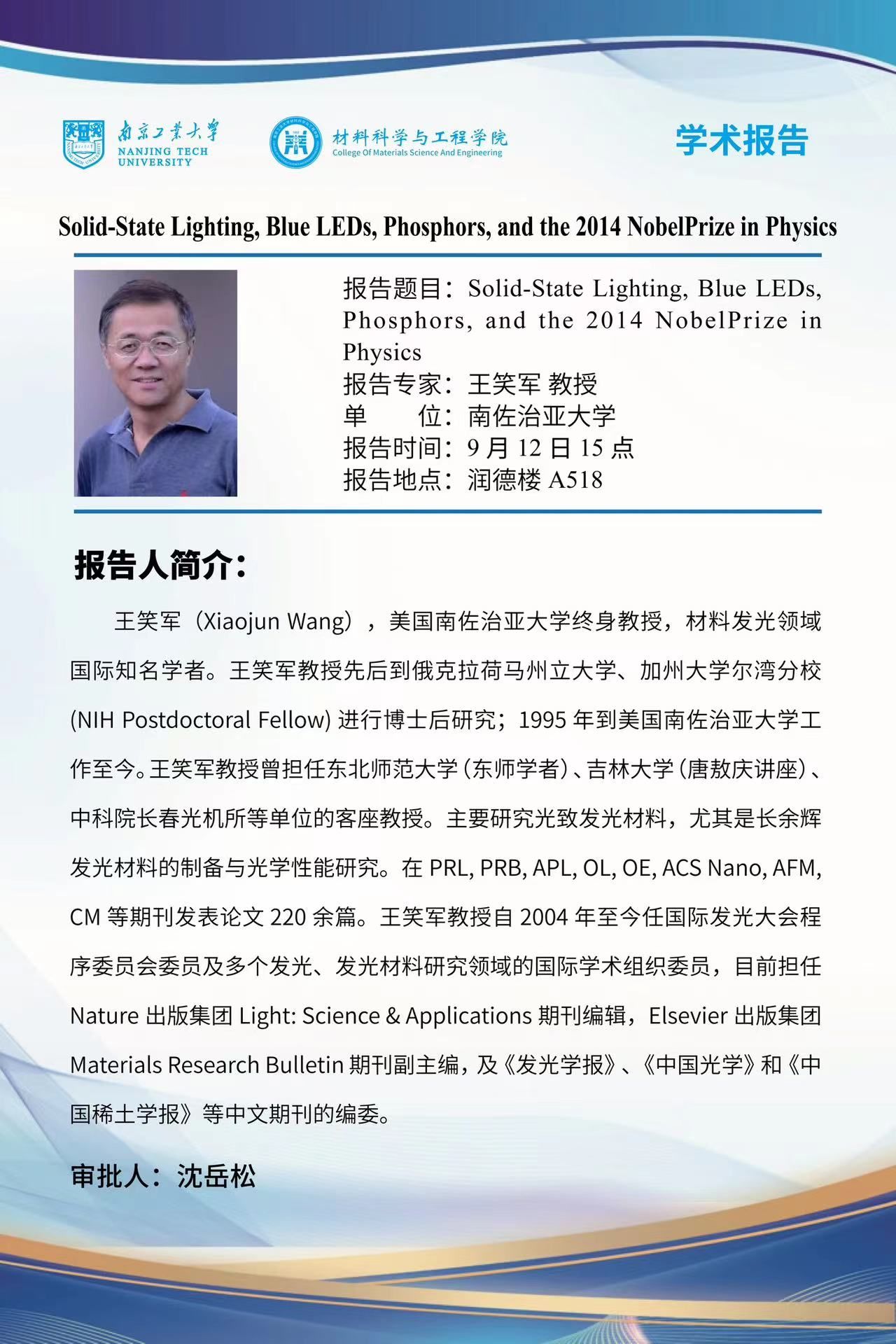 【学术报告】Solid-State Lighting,Blue LEDs,Phosphors,and the 2014 NobelPrize in Physics