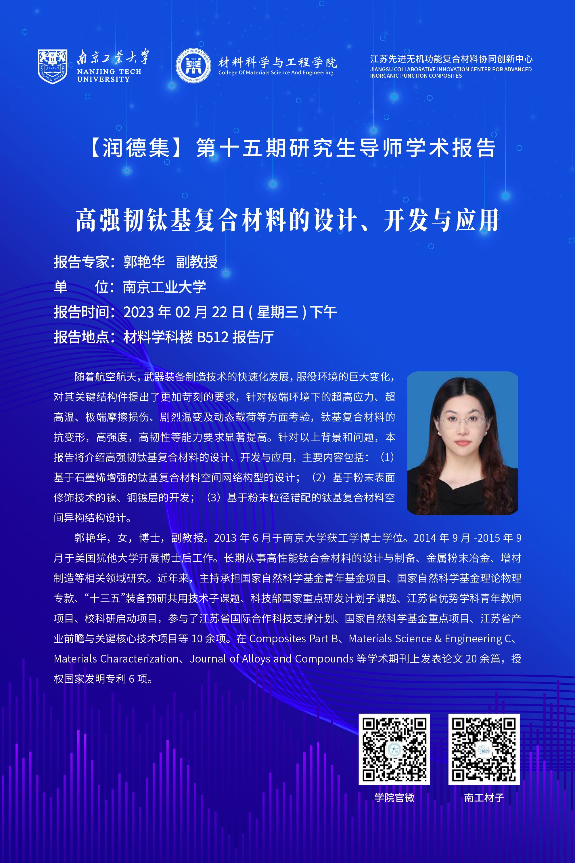【润德集-导师学术报告会】tyc234cc 太阳成集团学术沙龙第十五期讲座