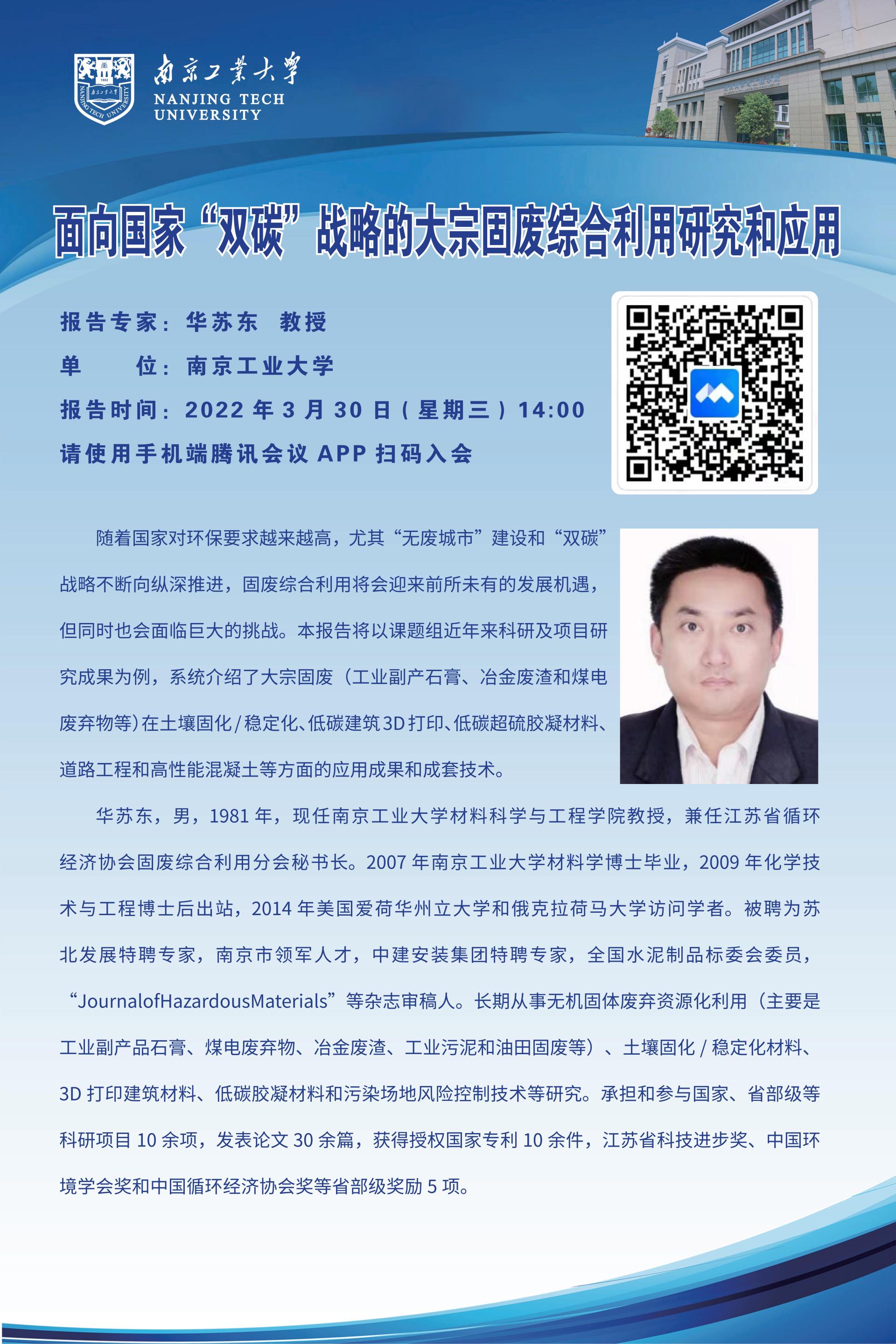 【导师学术报告会】面向国家“双碳”战略的大宗固废综合利用研究和应用