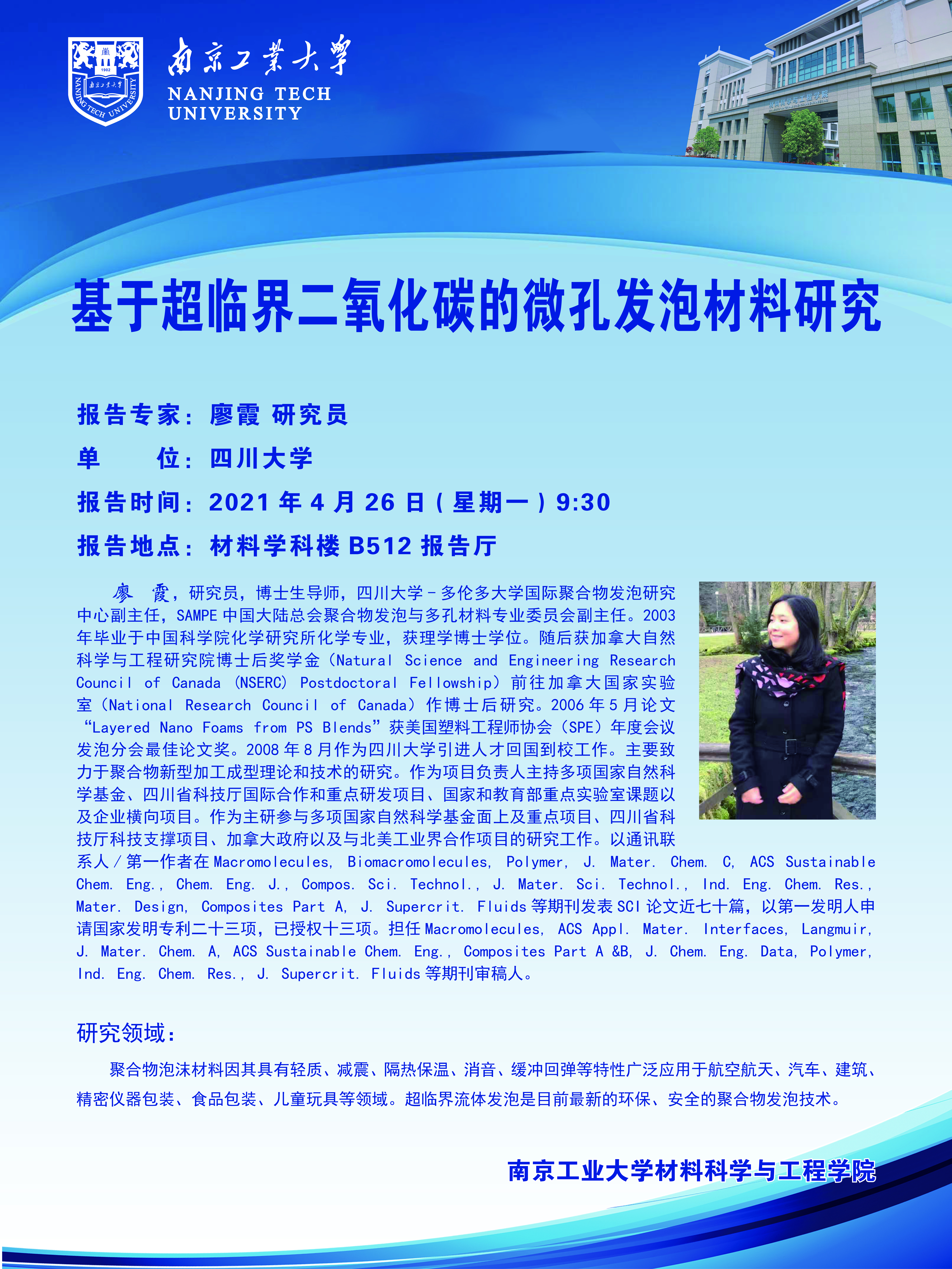 【学术报告】基于超临界二氧化碳的微孔发泡材料研究