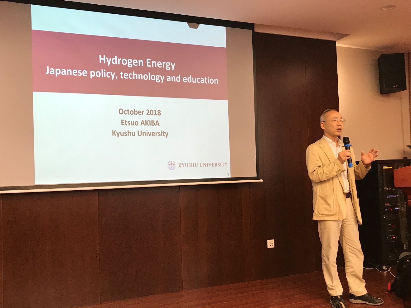 作者:朱云峰 审核:崔 升 上传:李博雅 2018年10月24日(周三)下午2:00,应tyc234cc 太阳成集团和江苏先进无机功能复合材料协同创新中心朱云峰教授的邀请,日本九州大学Etsuo Akiba教授在材料学科楼A518作题为“日本氢能技术的发展和应用”学术报告。tyc234cc 太阳成集团崔升副院长代表学院和中心欢迎Akiba教授的来访,并介绍了Akiba教授的研究方向和研究成果,朱云峰教授主持报告会,材料学院相关师生参会。 Akiba教授从2011年3月11日日本地震后带来的能源结构的改变、日本氢能和燃料电池的发展方针和路径、氢能在2020年日本东京奥运会期间的应用、TiFe基储氢材料的应用和Mg基储氢材料的研究(亚稳态合金和高压扭转技术)等多个方面进行介绍展示。 Akiba教授就Mg基储氢材料的热力学稳定和动力学缓慢,碳材料在储氢领域的应用,以及日本政府在推广氢能源的方针政策等问题与参会师生进行交流互动。Akiba教授的报告丰富生动且深入浅出,赢得了在场师生的阵阵掌声。此次报告会拓展了师生在氢能源方向的知识面,使得师生们对未来氢能源的发展趋势有了进一步的了解和认识。 报告会后,Akiba教授参观了朱云峰教授课题组的实验室,双方就实验室的发展、联合培养学生等方面进行了深入探讨。 附:Etsuo Akiba教授简历 Etsuo Akiba教授是世界储氢领域著名科学家、日本氢能领域研究的领导者、日本九州大学储氢研究部主任、国际碳-中性能源研究所首席研究员、日本“HYDRO☆STAR”(先进储氢材料的基础研究)项目首席科学家。他于1979年获得东京大学物理化学专业博士学位,主要研究方向为金属氢化物,成功开发出多种新型储氢材料,包括钛基BCC结构材料和Mg基材料等。鉴于他在储氢领域的卓越贡献,获得了多项重要奖励,包括2008年美国普渡大学颁发的Herbert C.Brown奖、2010年IPHE技术大奖、日本应用物理协会最佳技术论文奖等。