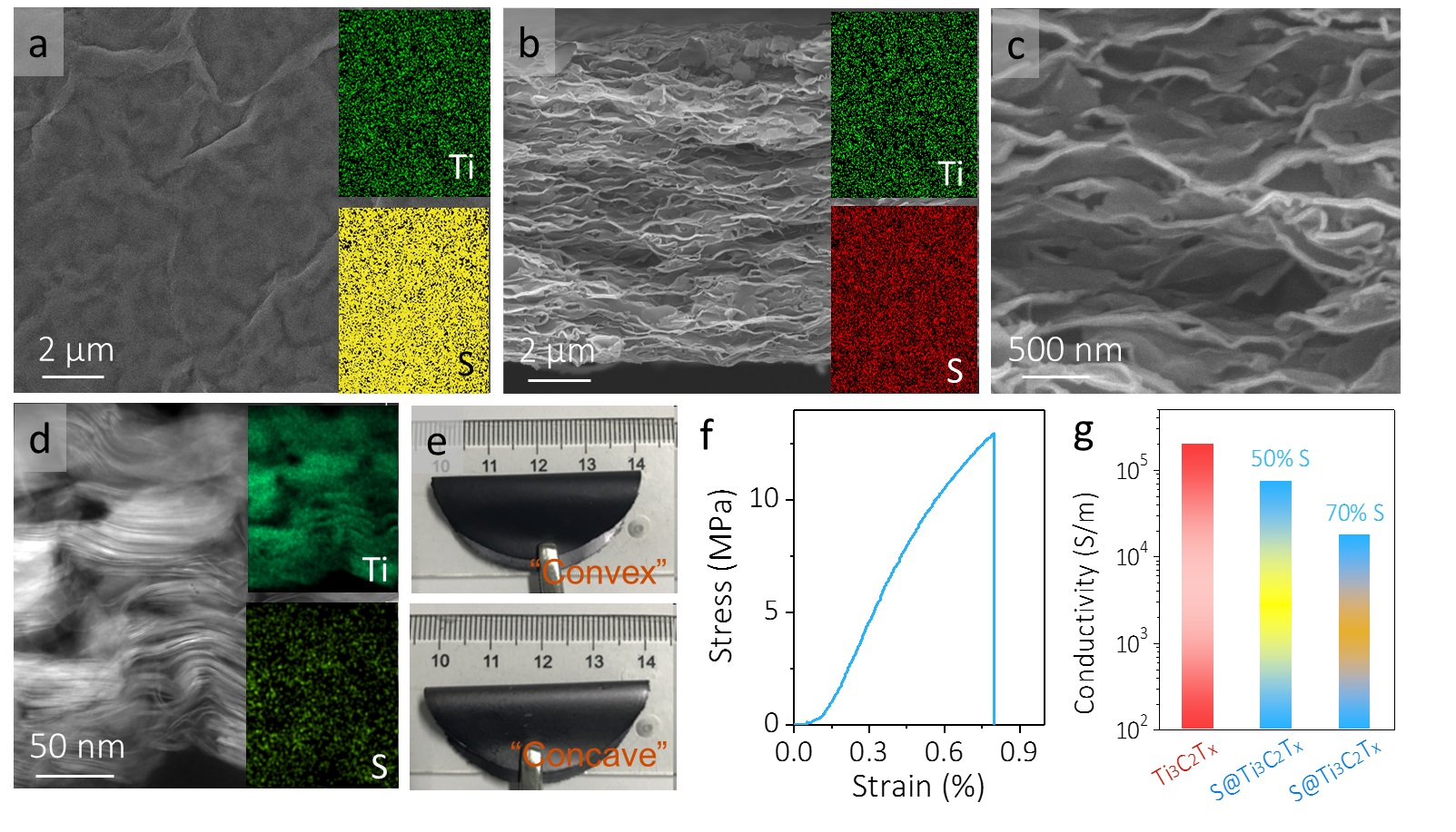 图2 S@Ti3C2Tx柔性膜的显微结构及表征