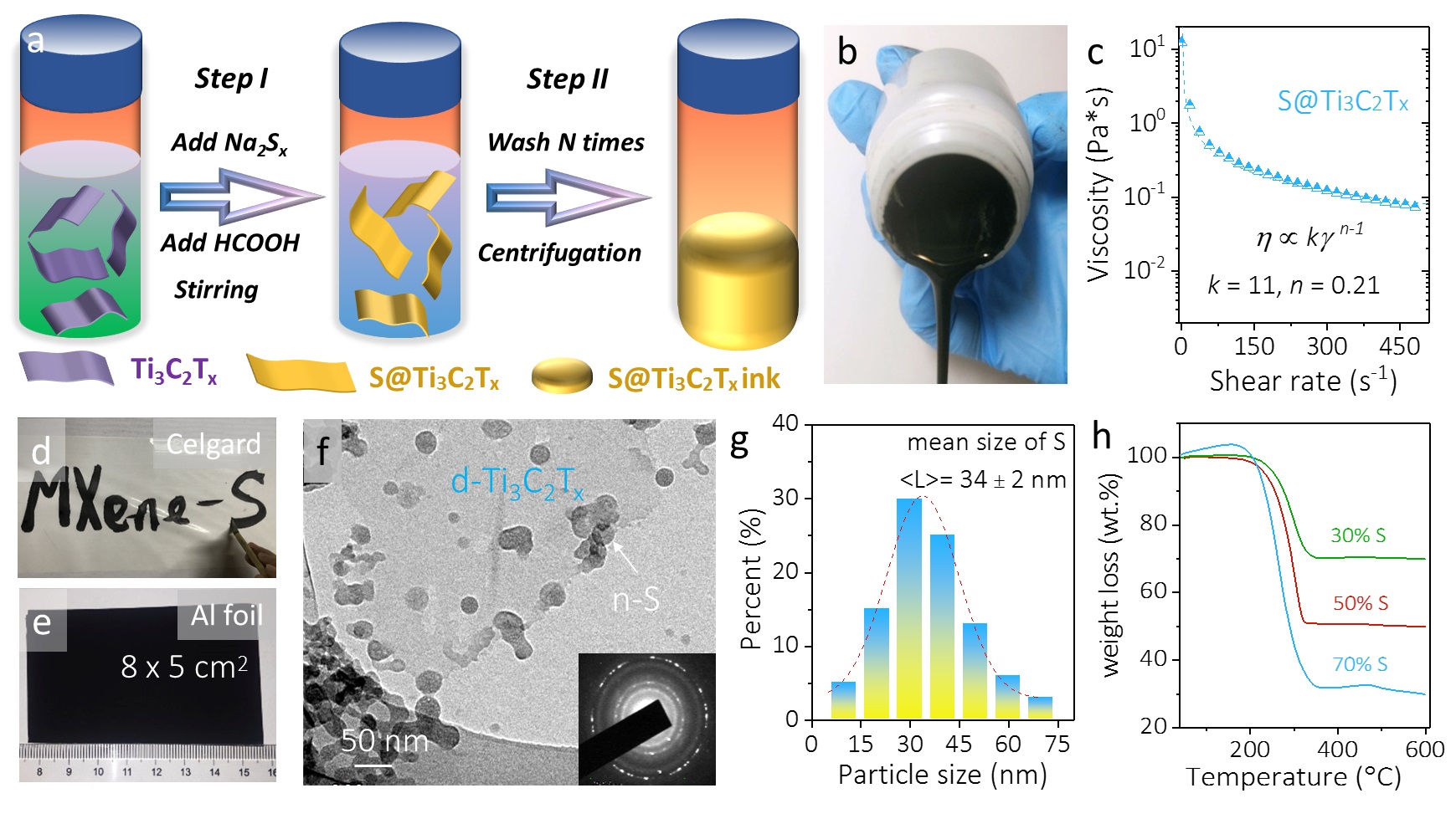 图1 S@Ti3C2Tx墨汁的合成与表征