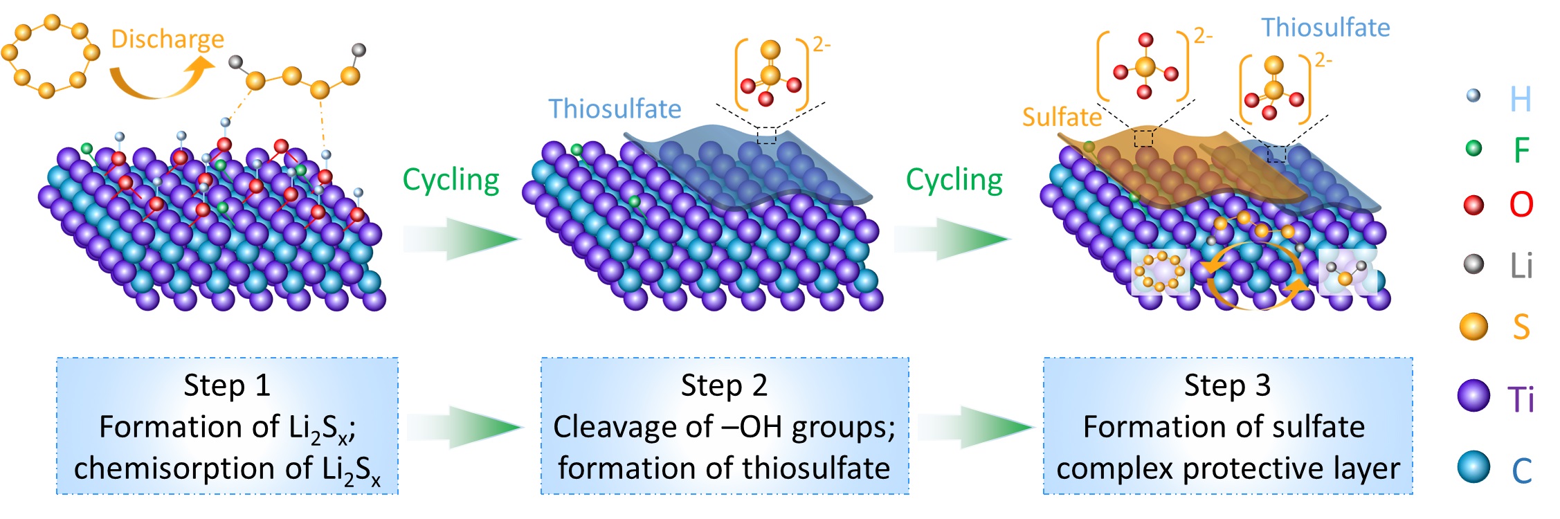 图4 Ti3C2Tx形成硫酸盐复合保护膜捕集多硫化物示意图
