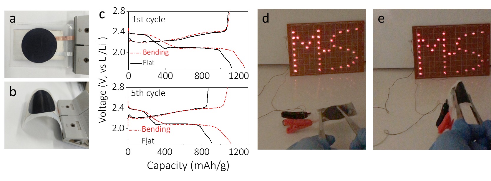 图5 基于S@Ti3C2Tx膜的柔性软包半电池原型器件