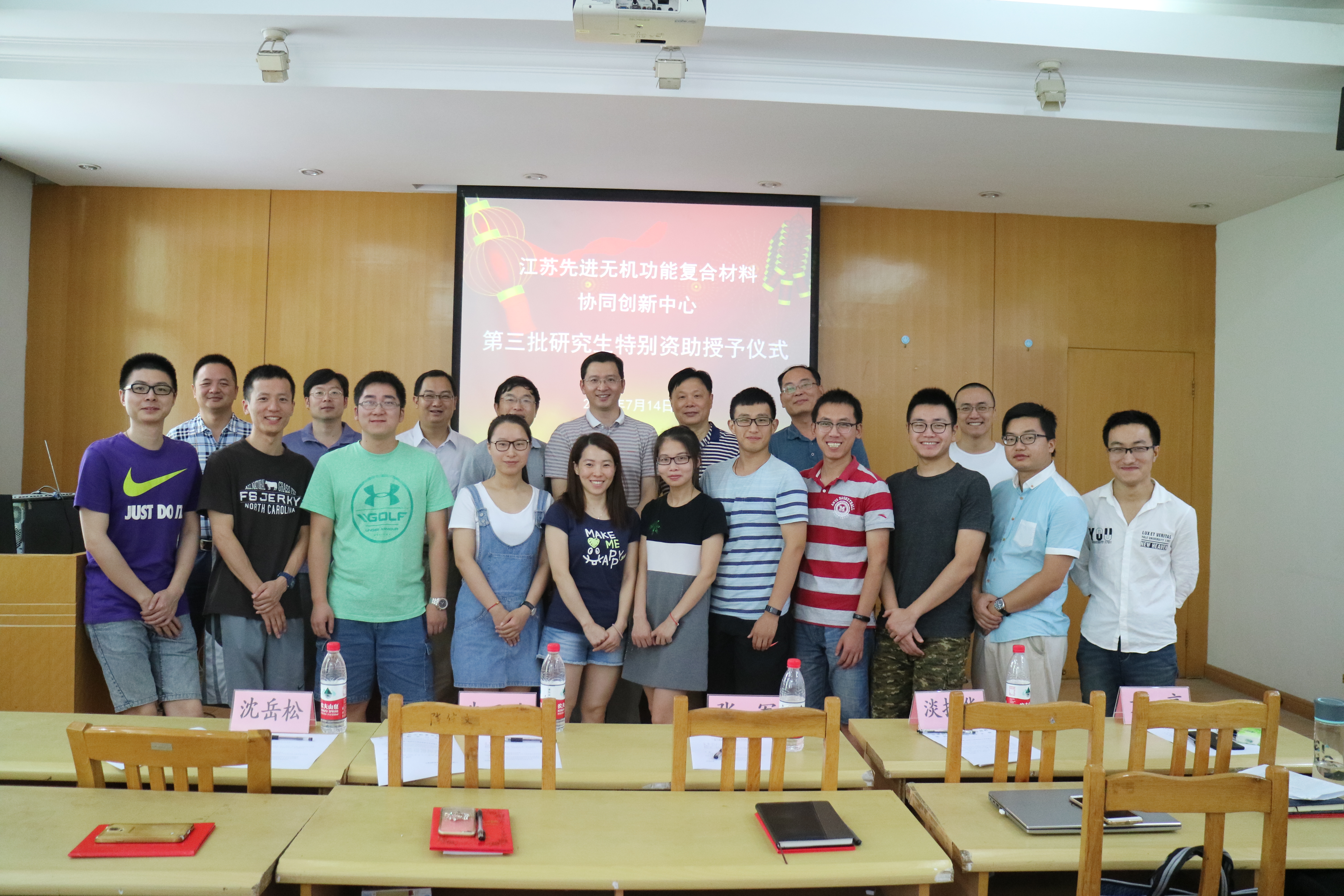 文:苏云 图:姚立春 编辑/上传:苏云 审核:陆春华 7月14日上午,江苏先进无机功能复合材料协同创新中心(以下简称“中心”)于东南楼320举行了第三批研究生特别资助授予活动。材料学院副院长王庭慰教授、材料学院副院长兼中心副主任陆春华教授、中心PI团队骨干代表、获资助研究生指导教师代表以及30余名获资助研究生出席了活动。授予活动由中心副主任崔升教授主持。 材料学院副院长王庭慰教授宣读了《关于确定第三批研究生特别资助名单的通知》。经研究生个人申请,专家小组评审和中心研究决定,此次共资助研究生38人,其中黄亨明等8人为博士A类资助;刘泉等8人为博士B类资助;仇旭等10人为硕士A类资助;张志远等12人为硕士B类资助。 博士A类资助获得者黄亨明博士代表全体受资助同学做了简短的发言。他与大家分享了对“协同”与“创新”的理解,鼓励大家善于合作,积极协同创新,要以更加饱满的热情投入到学习和研究工作中去,为中心和学院的发展,特别是“一流学科”建设尽一份力。 最后,中心副主任、材料学院副院长陆春华教授从三个方面做了总结。第一,要求获资助的研究生努力夯实基础,建立学术自信,多“走出去”提升国际视野;第二,希望受资助的同学学习前两批受特别资助的学长们,再接再厉,承前启后,积极高质量地完成各项指标任务;第三,陆院长借“协同”、“创新”寓意,希望指导教师们能更好地指导和帮助获资助的研究生开展高水平研究,努力、积极推进材料学科人才培养,科研成果获取等各项工作。