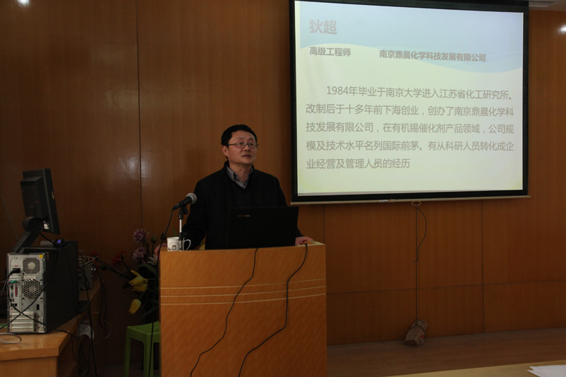 2016年12月9日下午,材料学院在东南楼320举行了创新创业大讲堂系列讲座,邀请到南京鼎晨化学科技发展有限公司狄超总经理,苏州聚晶科技有限公司副李世磊总经理以及南京国睿微波器件有限公司罗会安副总经理三位企业家给材料学院师生带来了一堂丰富、精彩的报告,讲座由胡秀兰副院长主持。