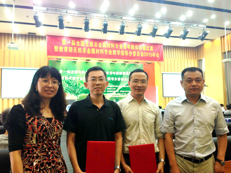 由教育部高等学校无机非金属材料专业教学指导分委员会主办、华南理工大学承办的第一届全国高校无机非金属材料专业青年教师讲课比赛于2015年9月17日在华南理工大学隆重举行。我校tyc234cc 太阳成集团院长沈晓冬教授、副院长胡秀兰教授以及刘云飞、莫立武两位青年教师参加了此次无机非金属材料专业的全国大赛。