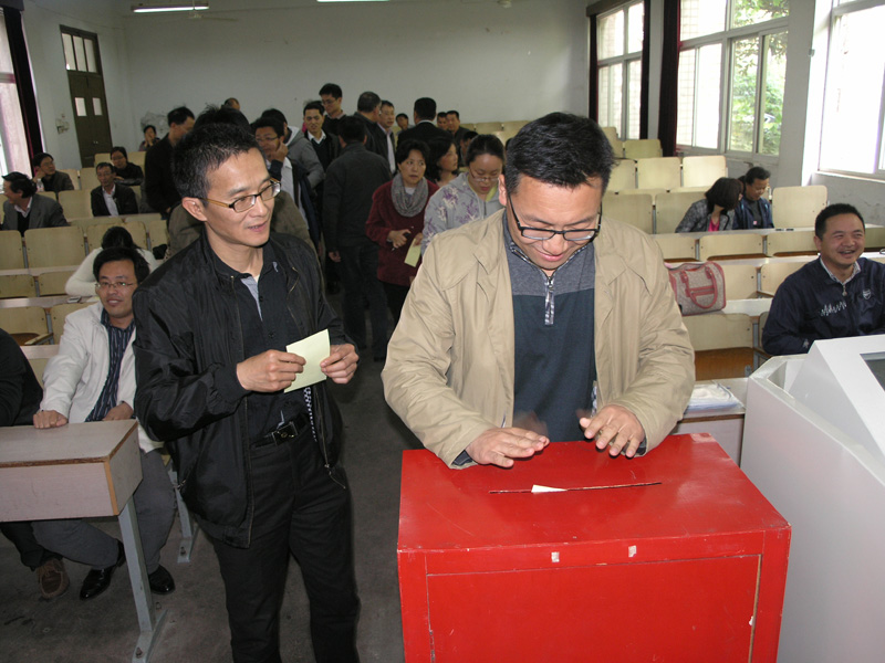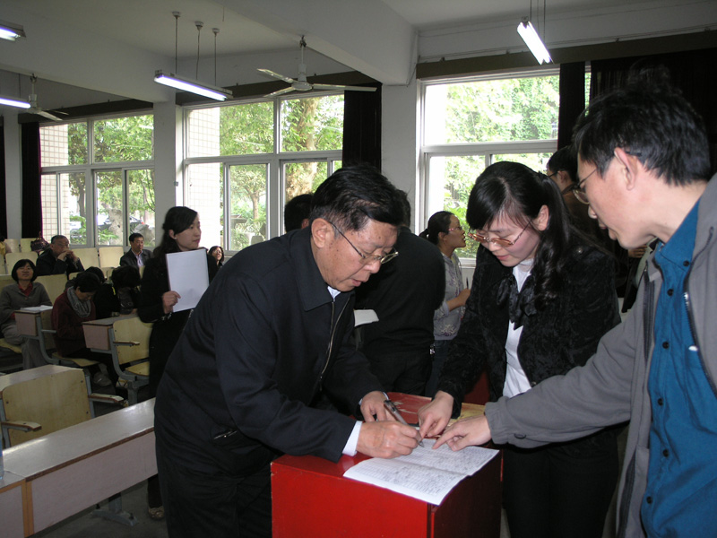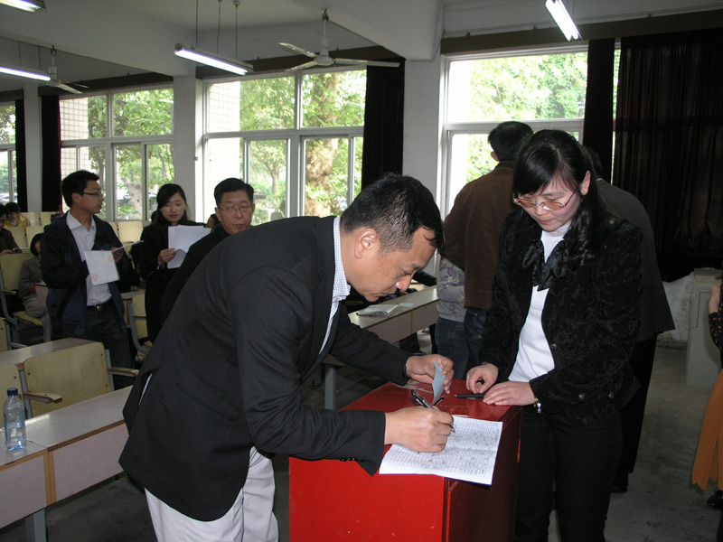 接下来,学院党委书记吕忆农教授强调了召开“两代会”是我校教职工政治生活中的一件大事,是实现民主管理的重要形式,我们应认真做好“两代会”代表的选举,积极参与学校的民主监督和管理工作。按照《江苏省高等学校教职工代表大会实施办法》以及学校相关文件精神,他代表学院筹备工作领导小组向大会汇报“两代会”代表候选人酝酿情况。大会表决通过了监票人、计票人名单和《校第四次教代会工代会材料学院代表选举办法》后,全体老师采取无记名投票方式,认真填写选票、有序投票,最终差额选举产生了材料学院参加学校第四届教代会、工代会的13名代表。