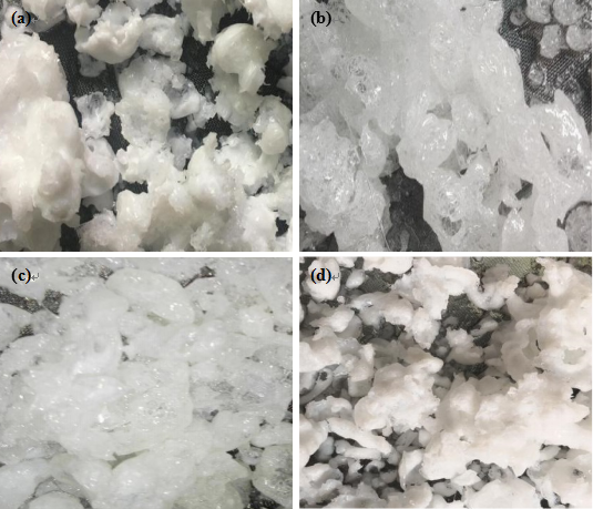 图1 CBS微晶玻璃实物照片:(a)A1玻璃 (Ca/Si = 0.59, 1500℃),(b)A3玻璃 (Ca/Si = 0.61, 1500℃),(c)A4玻璃 (Ca/Si = 0.62, 1500℃),(d)A6玻璃 (Ca/Si = 0.64, 1500℃)