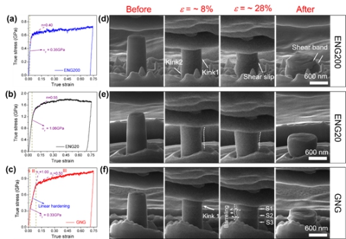针对这一科学问题,我院操振华教授团队与南京大学、美国普渡大学等合作,设计并制备出晶粒具有梯度变化与等尺寸的两种层状结构Cu/Ta金属复合薄膜,其屈服强度和均匀塑性应变分别高达1GPa和70%,兼具高强度与高塑性,同时发现梯度晶粒金属展现出硬化指数为1的线性应变硬化行为。这一结果为高性能纳米结构金属的设计与制备开辟了新思路。相关研究成果以题为“Strong and plastic metallic composites with nanolayered architectures”刊登在金属材料顶刊Acta Materialia上。论文第一作者和通讯作者为我院操振华教授,南京大学孟祥康教授为共同通讯作者。相关研究得到了国家自然科学基金和江苏省高校优势学科建设工程等的资助。