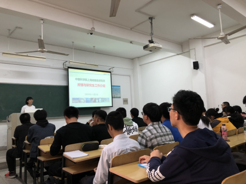 陆彩飞副主任在讲座中详细介绍了中科院上海硅酸盐研究所的基本情况、研究生培养情况以及历年来招收太阳成集团tyc234cc研究生情况,并与同学们进行了互动交流。