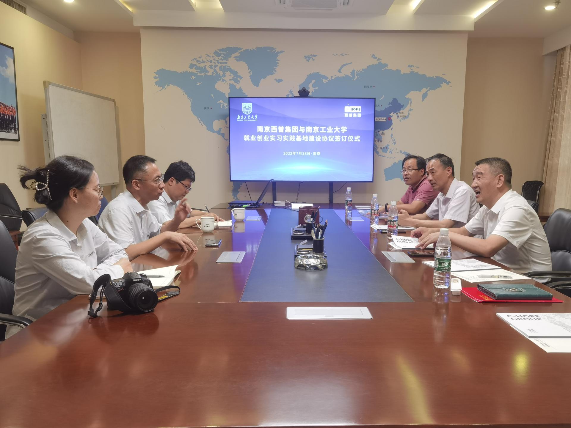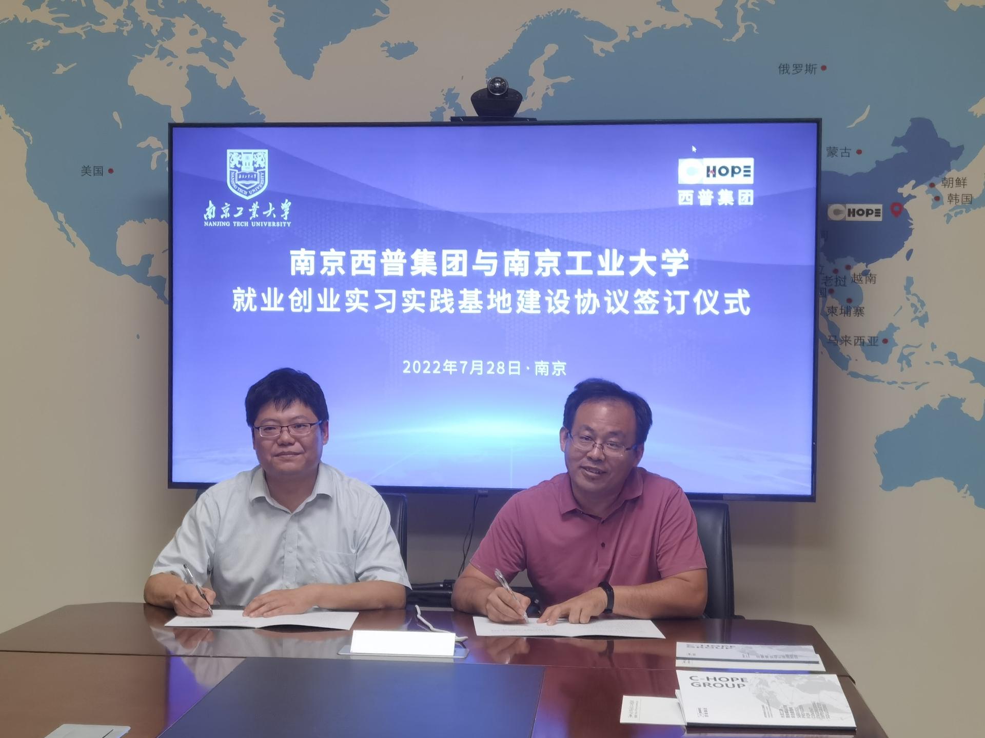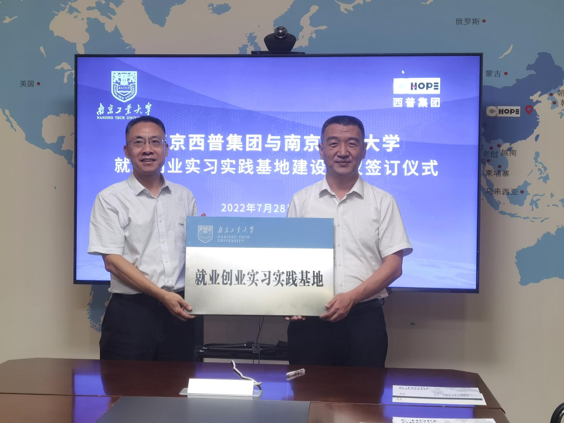 材料学院党委副书记石防震和南京西普水泥工程集团有限公司企业发展部部长孙睿签订了合作协议。材料学院党委书记高树军向公司授予“就业创业实习基地”铜牌。