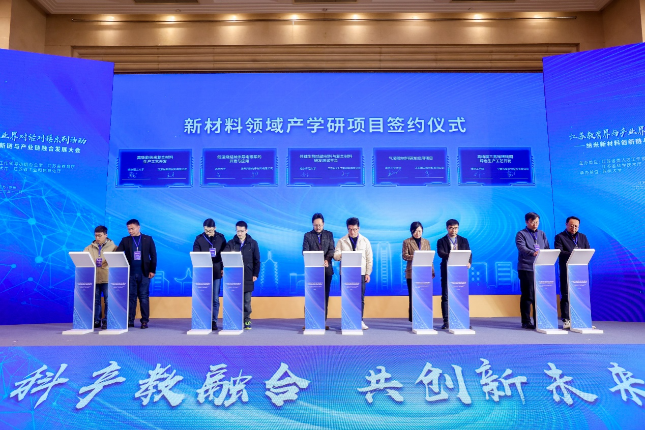 现场举行了苏州实验室与苏州大学共建“教育、科技、人才一体化”先行示范区启动仪式、“江苏省纳米产业战略咨询委员会”成立仪式、高校科技成果转化基地授牌仪式;开展了高校科技成果和企业技术需求发布、项目签约、政策环境推介等系列产学研对接活动;发布了2024年度江苏教育界与产业界对话对接系列活动方案。