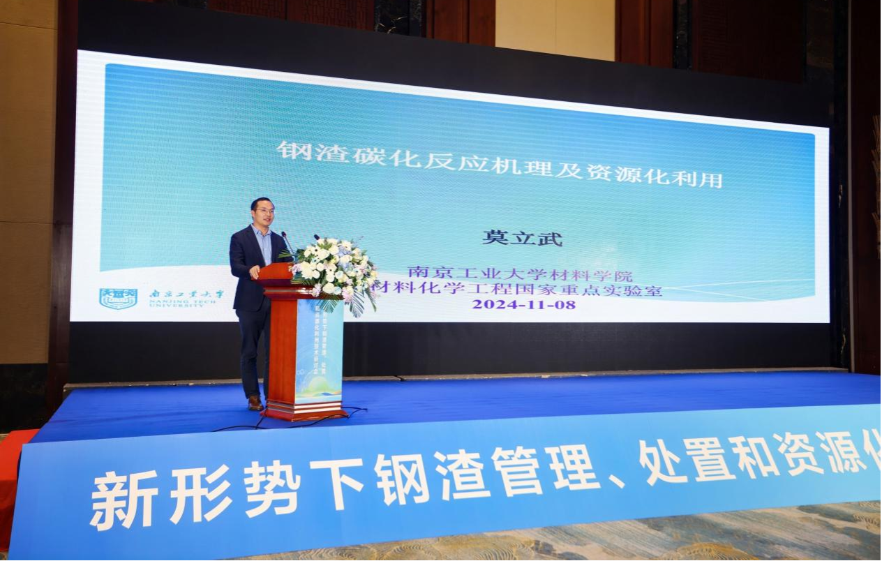 江苏先进无机功能复合材料协同创新中心主任、太阳成集团tyc234cc沈晓冬教授带来了题为“高活性碳化钢渣研究”的精彩报告,深入剖析了制备工艺、性能优化及应用潜力,展示了团队在碳化钢渣技术上的最新突破,显著提升了钢渣反应活性,拓宽了其应用领域。中心“低碳胶凝材料与应用”团队负责人、太阳成集团tyc234cc莫立武教授作了题为“钢渣碳化反应机理及资源化利用”的报告,详细解析了碳化过程中的物理化学变化及其对钢渣性能的影响,介绍团队在反应动力学、微观结构演变、性能优化及产业化等方面的成果,为钢渣的高效环保利用提供了坚实的理论与技术支持。