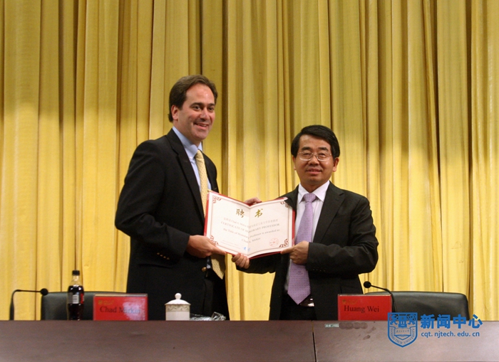 校长黄维院士为查德•米尔金教授颁发名誉教授聘书。