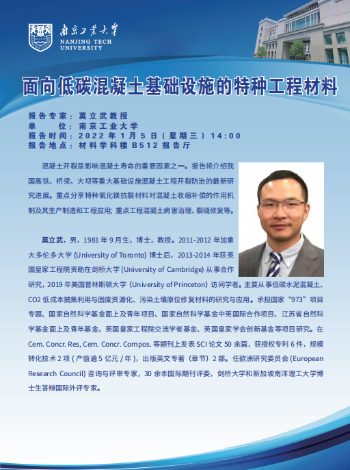 【导师学术报告会】面向低碳混凝土基础设施的特种工程材料