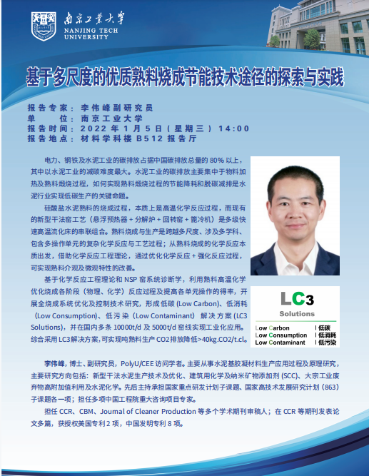 【导师学术报告会】基于多尺度的优质熟料烧成节能技术途径的探索与实践