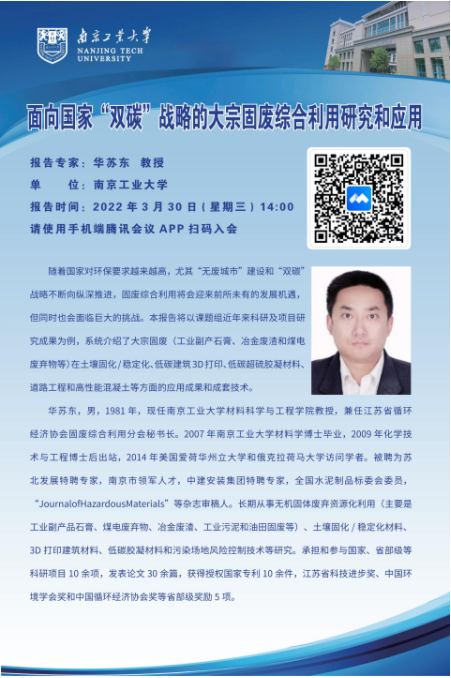【导师学术报告会】面向国家“双碳”战略的大宗固废综合利用研究和应用