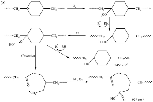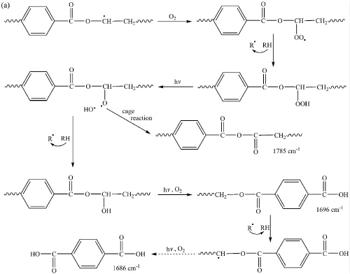 高分子材料在自然环境中暴露,就会逐渐发生老化,引起老化的外界因素有日光、臭氧、氧、雨、雪、温度、湿度等。太阳光辐射的紫外光能量是引发高分子材料光氧老化的主要因素。因此,高分子材料的紫外光降解行为与机理研究显得尤为重要。聚对苯二甲酸乙二醇酯-1,4-环己烷二甲醇酯(PETG)是一种新型共聚酯,而关于PETG的紫外光降解行为与机理研究较少。