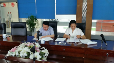 图2 中心新型太阳能电池材料研究团队负责人管自生教授与中电电气(南京)光伏有限公司签订相关合作协议