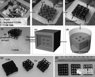 据南极熊了解,这种方法实际上将石墨烯氧化悬浮物与水混合,然后在-25℃的环境下将其3D打印到一个表面上。它的好处就是水会结冰,将完成的打印层固定住,同时起到支持作用,令下一层得以继续顺利打印。